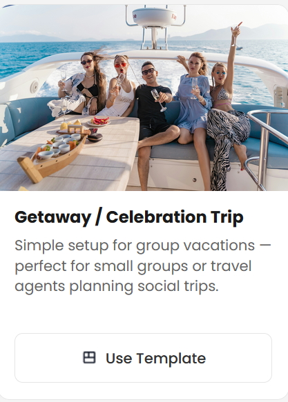 Start with the Getaway / Celebration Trip template.